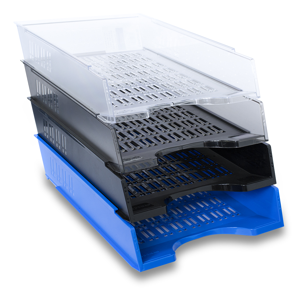 Stolní děrovaný odkladač na spisy, vnější rozměry 256x70x370mm, odolné provedení. kouřová