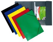 Spisové desky z neprůhledného polypropylenu se třemi klopami a gumičkami přes rohy.