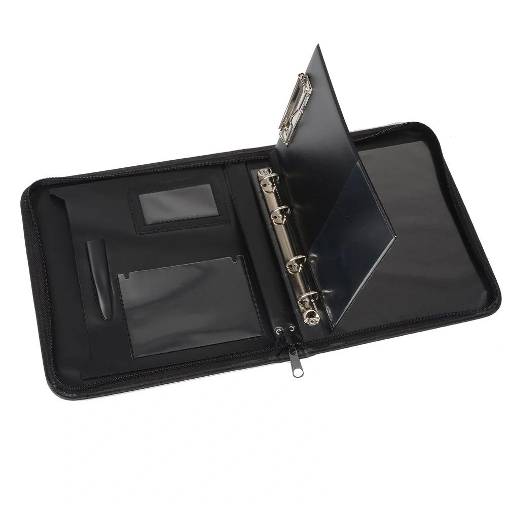 Konferenční mapa A5/ 20x26cm / se zipem a vnitřními kapsami různých velikostí . Provedení imitace černé matové kůže.