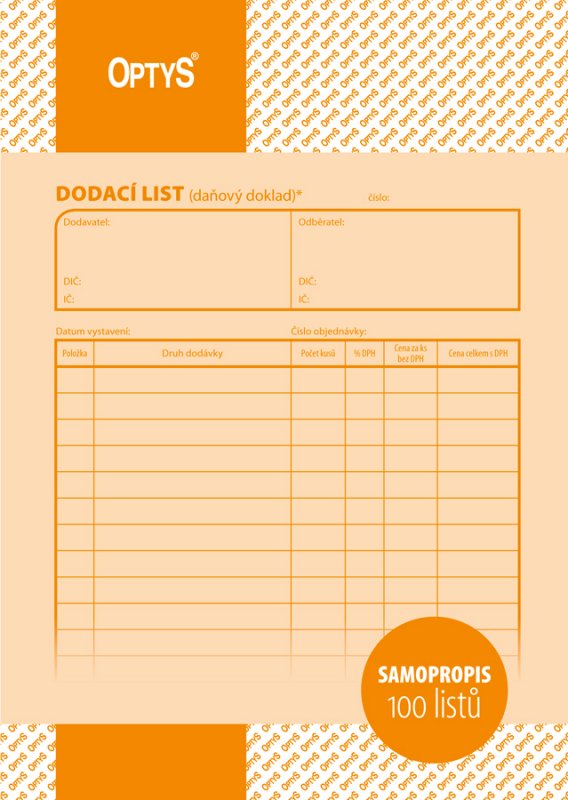 Optys 1077 - Dodací list A5 NCR, samopropisovací - 100 listů