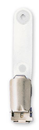 Kovový klips "kšanda", pásek z mléčné umělé hmoty, kovová patentka. Bal. 100ks.