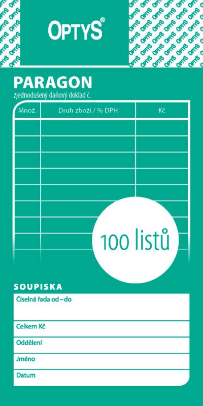 Optys 1070 - obchodní paragon, 100 listů