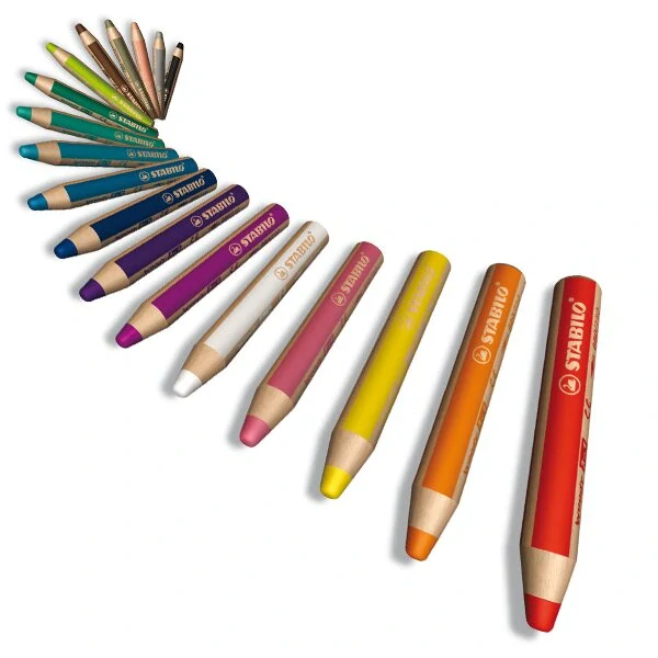 Pastelka, voskovka a akvarelová pastelka v jednom. Obsahuje jemnou tuhu na bázi vosků s vysokou intenzitou pigmentu, která je odolná proti zlomení. Díky své tloušťce vhodná pro malé děti.