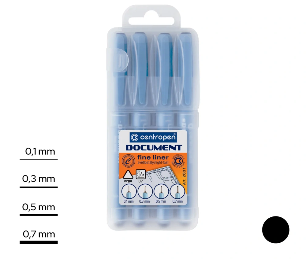 Sada dokumentních linerů s vodě odolným černým a světlostálým inkoustem - vhodné i pro tech.kreslení.