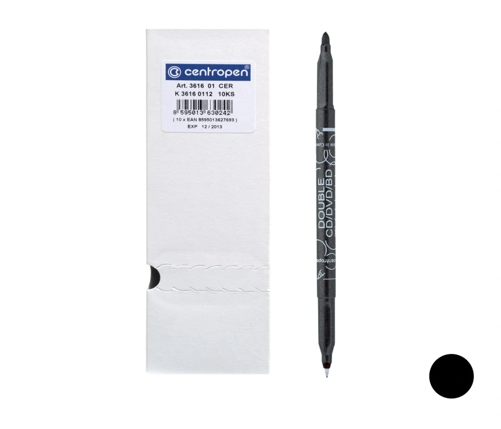 CENTROPEN 3616 Double CD permanentní oboustrannýTwin marker- má dva různé hroty - válcový pro stopu 2,5mm, jemný hrot pro stopu 0,6mm.