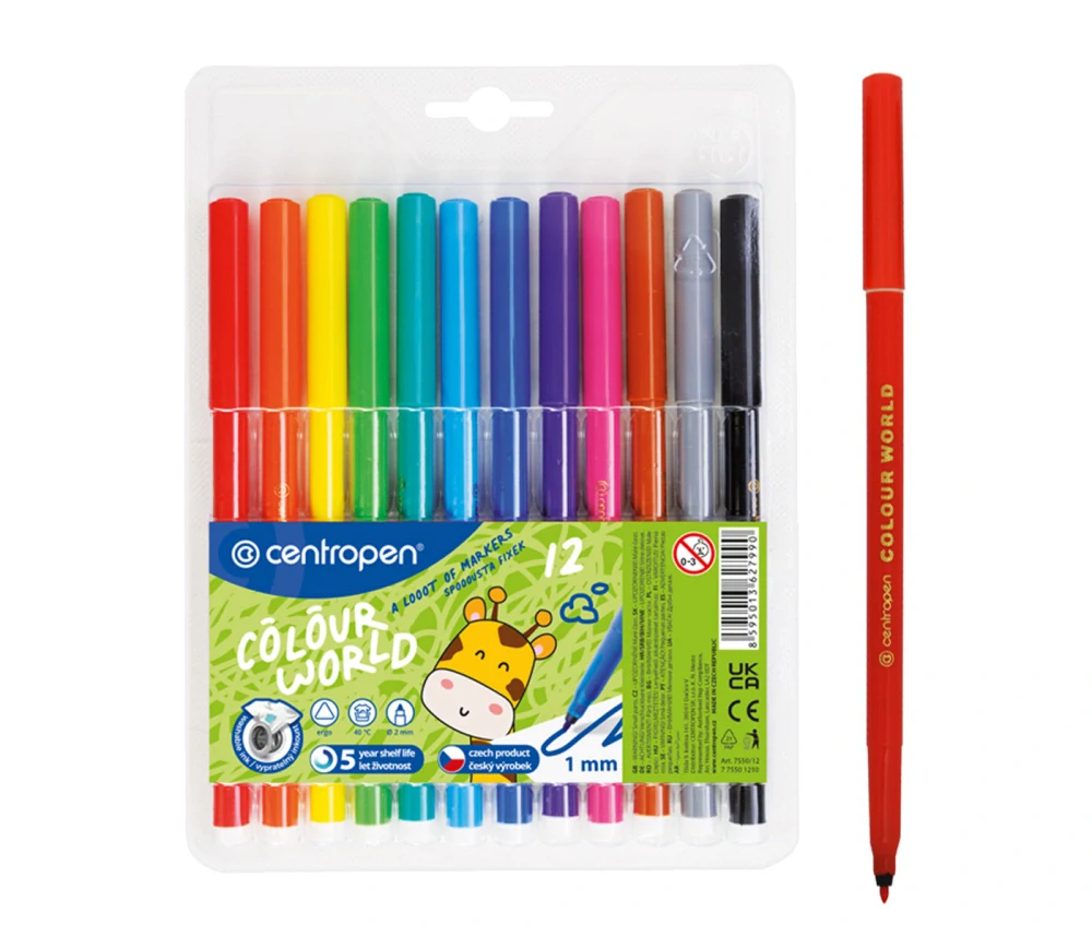 Fixy s vypratelnými inkousty a ventilačním chránítkem. Jsou vyrobeny z polypropylenu a odolávají vyschnutí minimálně 3 roky. Vláknové hroty průměru 1,8 mm odolné proti zatlačení.