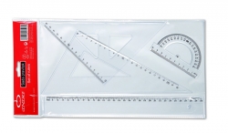 Set 4 kusů pravítek - pravítko se stupnicí 30cm, trojúhelník s ryskou se stupnicí 16 cm/45°, trojúhelník se stupnicí 22cm /60°, úhloměr se stupnicí 10cm /180°