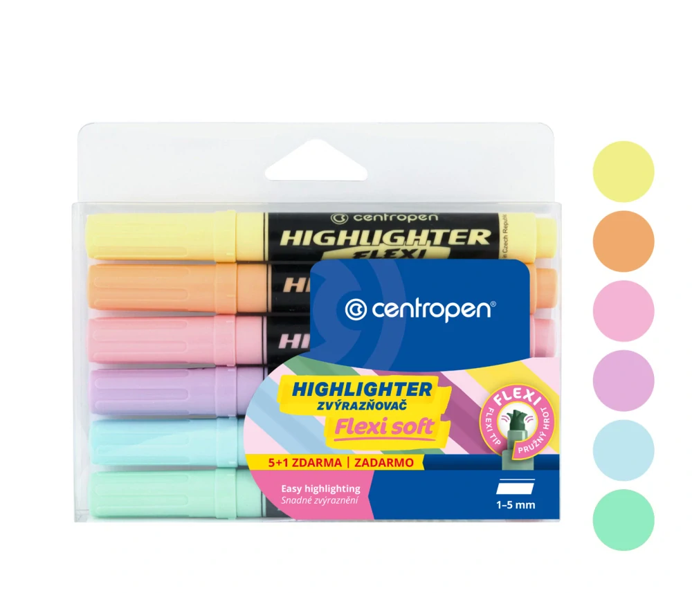- zvýrazňovač 8542/6 ks FLEXI SOFT pastelová