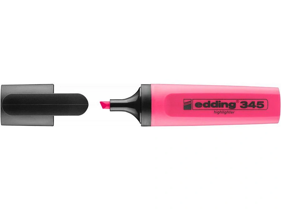 Zvýrazňovač EDDING 345 růžový - ploché tělo, seříézlý hrot, šíře stopy 2-5mm.
